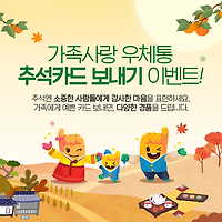 풍요로운 한가위, 소중한 사람들에게 감사한 마음을 전하세요~ 가족사랑 우체통 추석카드 보내기 이벤트! (0) | 2019.09.05 |