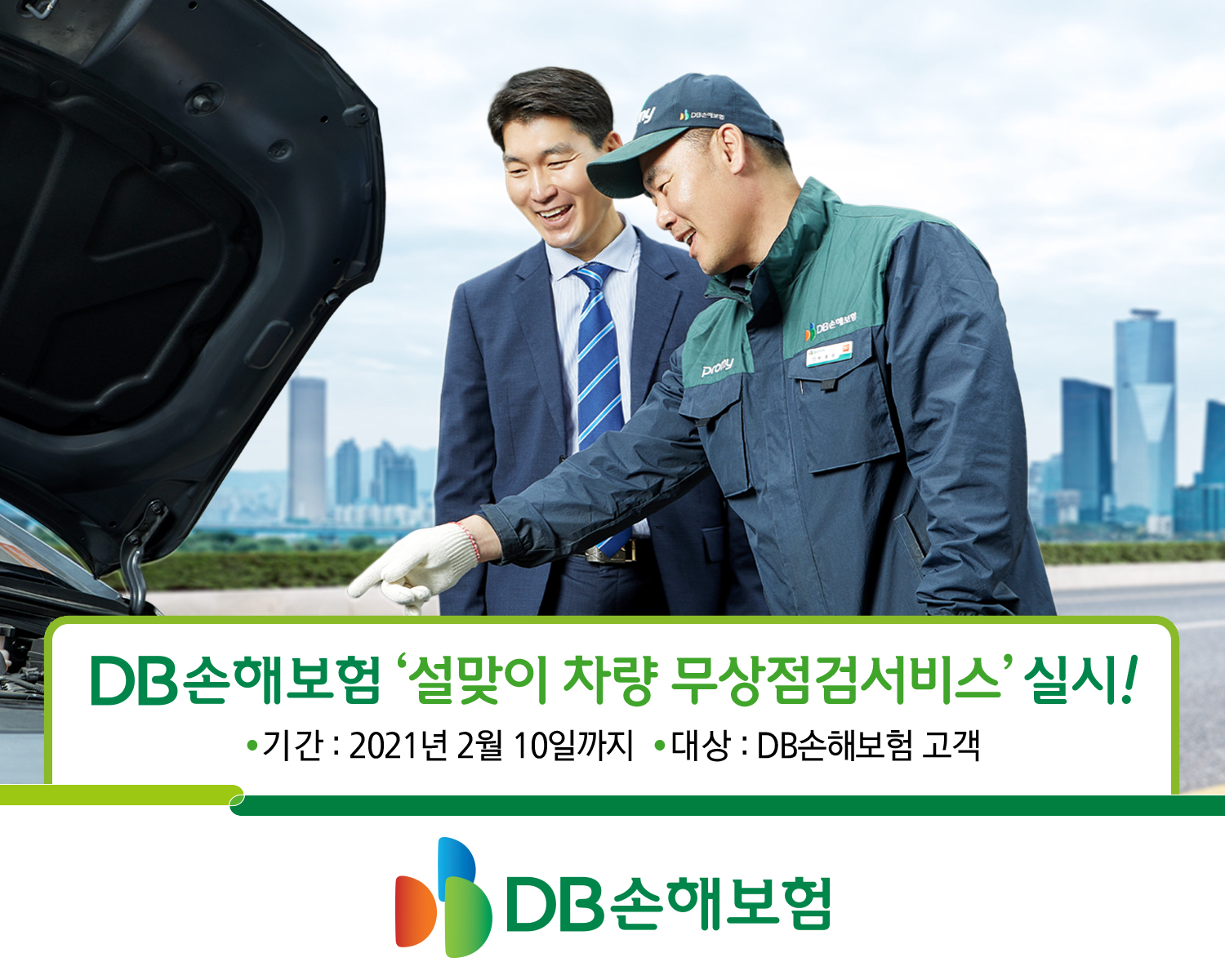 DB손해보험은 오는 10일까지 연휴기간 전 사고예방과 고객만족도 제고를 위해 차량 무상점검서비스를 실시합니다.