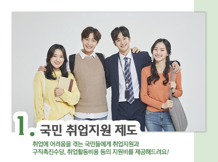 - 신청방법: <국민취업제도> 홈페이지 접수(바로가기), 관할 고용센터 방문