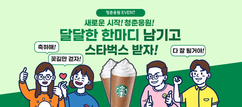 지금 바로 아래 링크를 타고 청춘응원 이벤트에 참여하세요!
