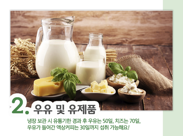| 2. 식품별 소비기한 – 우유 및 유제품