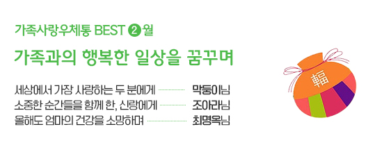 오늘은 이전처럼 가족과의 행복한 일상을 꿈꾸는 가족 사연을 가지고 왔는데요. 따뜻한 가족애와 감동의 메시지를 전해드릴, 가족사랑 우체통 2월 베스트 사연 함께 읽어볼까요? :D