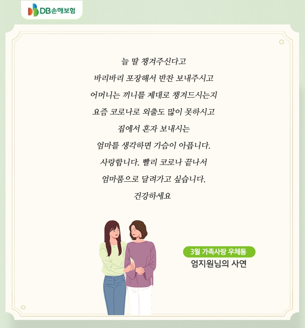 지금까지 DB손해보험 가족사랑 우체통 베스트 사연을 함께 살펴보았어요.
