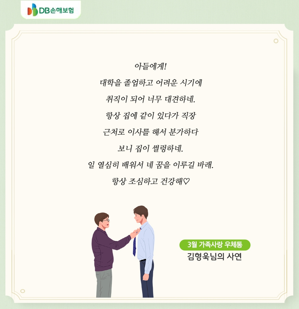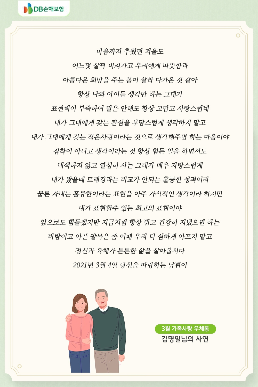 지금까지 DB손해보험 가족사랑 우체통 베스트 사연을 함께 살펴보았어요.