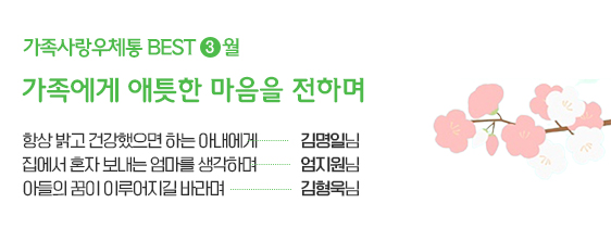 | 봄철, 가족의 건강을 기원하는 [가족사랑우체통 BEST 사연, 4월] (0) | 2021.04.30 |