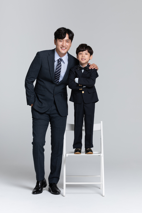 말쑥한 슈트 차림은 패밀리룩 가족사진의 대표로 손꼽히는데요! 온 가족이 같은 색으로 재킷에 넥타이까지 말끔히 차려 입으면, 영화 포스터처럼 개성 넘치고 분위기 있는 가족사진을 남길 수 있답니다.