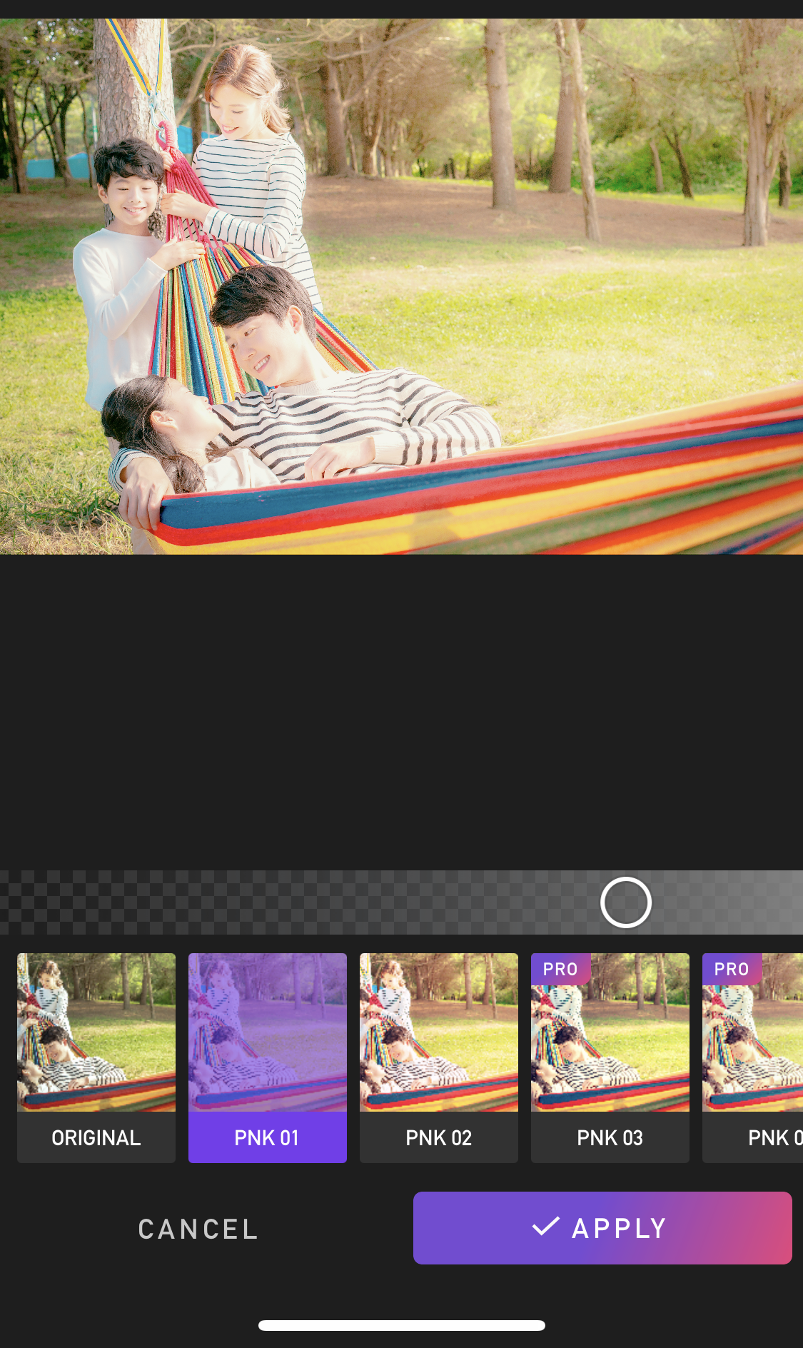 간단히 파스텔 톤 느낌의 사진 보정을 할 수 있는 앱으로 VVD 앱을 추천드리는데요. 야외에서 찍은 가족사진에 적극 활용해 보세요! 빛이 잘 들어오는 장소에서 찍으면 더 극적인 연출도 가능하다는 사실!