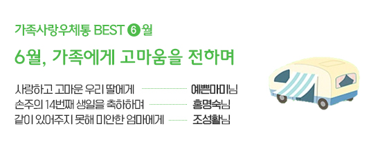오늘은 가족에게 고마움을 전하는 6월 우체통 BEST사연을 가지고 왔는데요. 따뜻한 가족애와 감동의 메시지를 전해드릴, 가족사랑 우체통 6월 베스트 사연 함께 읽어볼까요? :D