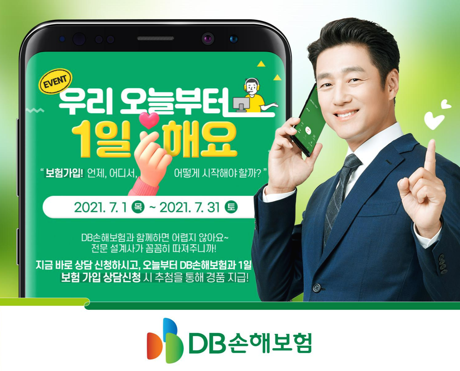 DB손해보험 대표 홈페이지와 모바일앱에서 ‘우리 오늘부터 1일 해요’ 이벤트를 실시합니다!
