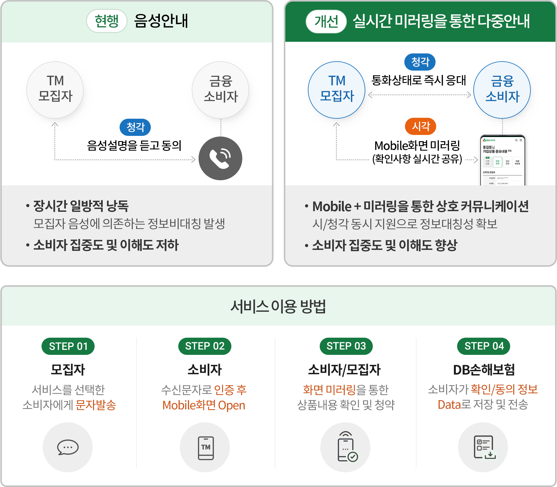 디지털 미러링 기술을 통해 전화로 보험을 가입하는 고객이 보험상품의 중요한 내용을 더 잘 이해할 수 있게 되어, 완전판매 및 보험계약 유지율 개선이 기대됩니다.