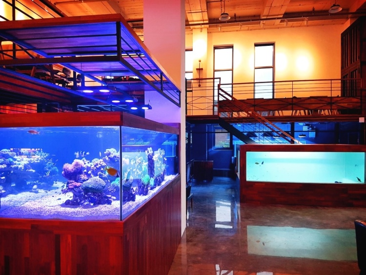 카페 중앙에는 커다란 오픈형 수족관이 있는데요.