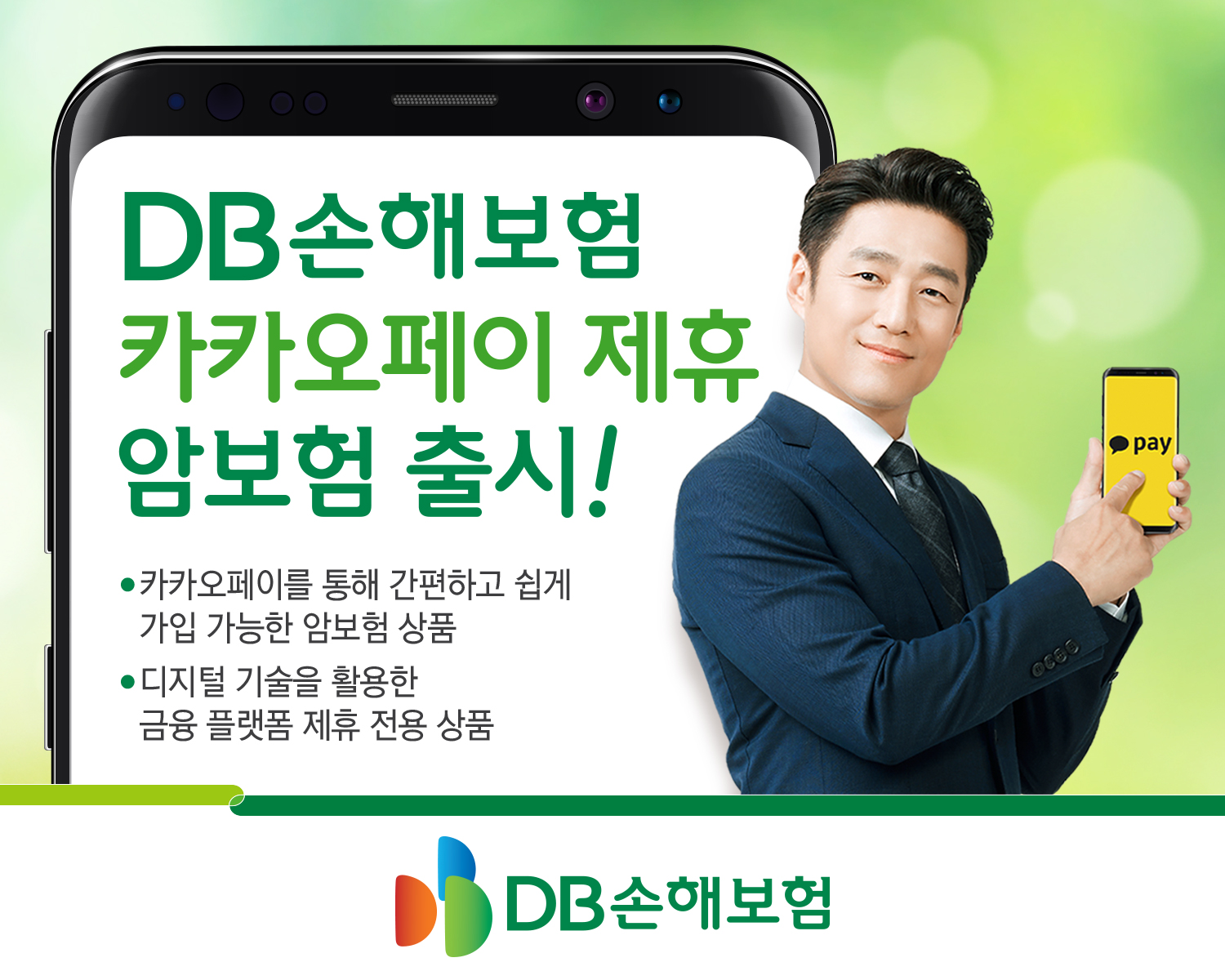 또한, 이번 암보험은 디지털 기술을 활용한 금융 플랫폼과의 첫 번째 제휴 상품으로, DB손해보험 최초로 장기보험 계약 체결 시스템에 오픈 API(Application Program Interface) 프로그램을 적용하여 금융 플랫폼과의 제휴 모델을 확장할 수 있는 기반을 마련하였습니다. 또한 카카오페이 회원이라면 번거롭게 여러 정보를 입력하지 않고 자동으로 완성되는 기능을 추가하여 가입 절차를 단축시켜 고객이 편하고 빠르게 가입할 수 있습니다.