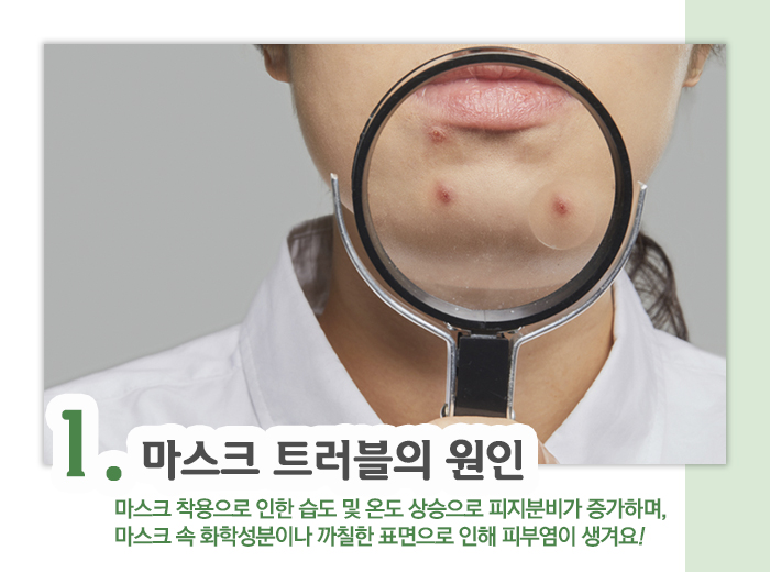 가을장마가 지나고 다시 뜨거운 햇빛이 내리쬐는 요즘입니다. 코로나19로 인해 더워도 마스크를 벗을 수 없어 피부트러블을 호소하는 분들이 많다고 하는데요. 오늘은 마스크로 인한 피부 질환과 피부트러블 케어법은 무엇인지 알아보도록 하겠습니다. 피부 트러블을 겪고 계신 분들이라면 주목!