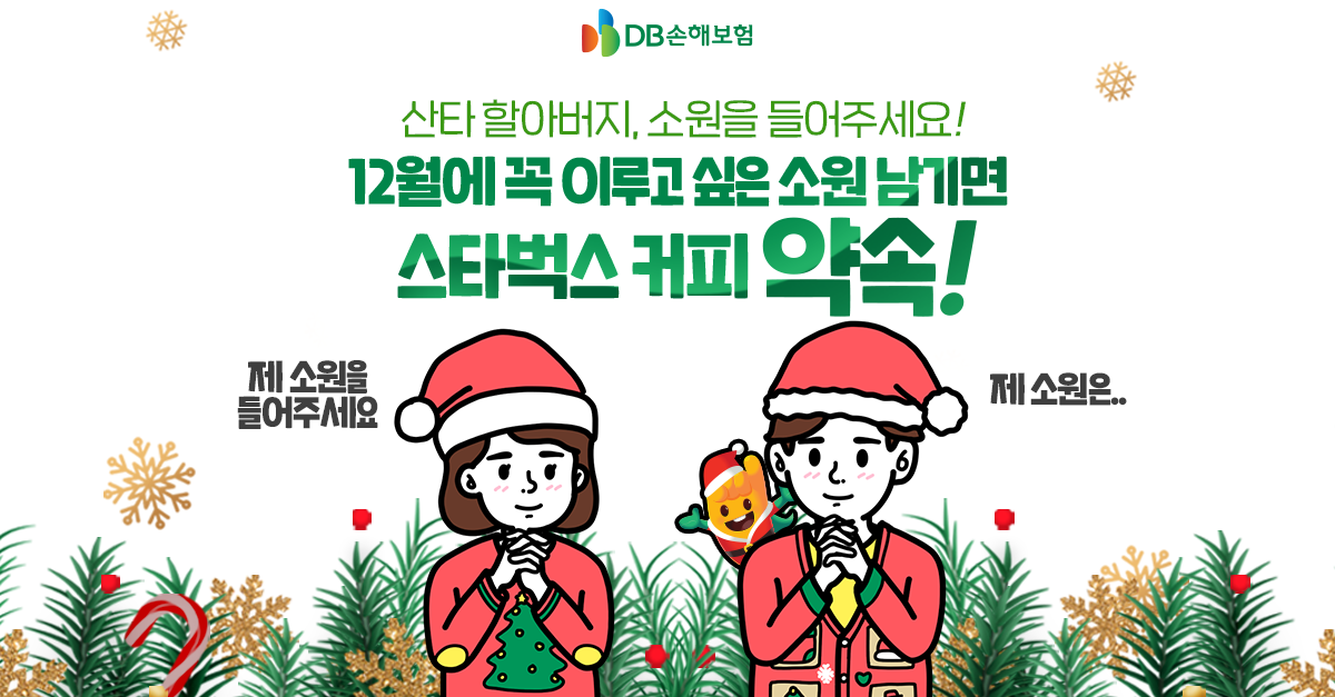 참여 방법은 아주 간단해요! 먼저 DB 손해보험 공식 인스타그램 계정을 팔로우하고, 게시물 좋아요를 누른 다음, 12월에 꼭 이루고 싶은 소원을 댓글로 남겨주시면 된답니다!