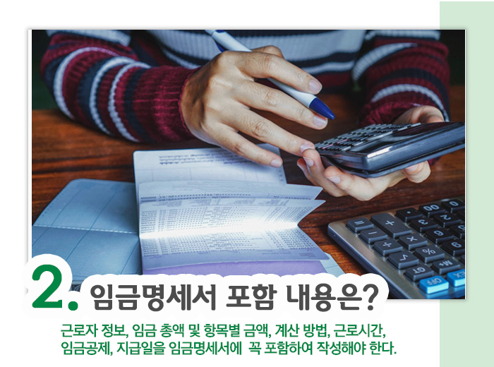임금명세서에 포함되어야 하는 내용은?