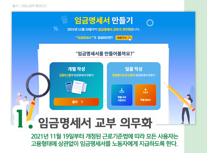 임금명세서 교부 의무화, 11월 19일부터 시행