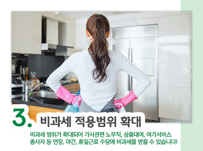 | 3. 연장•야간•휴일근로수당 비과세 적용범위 확대