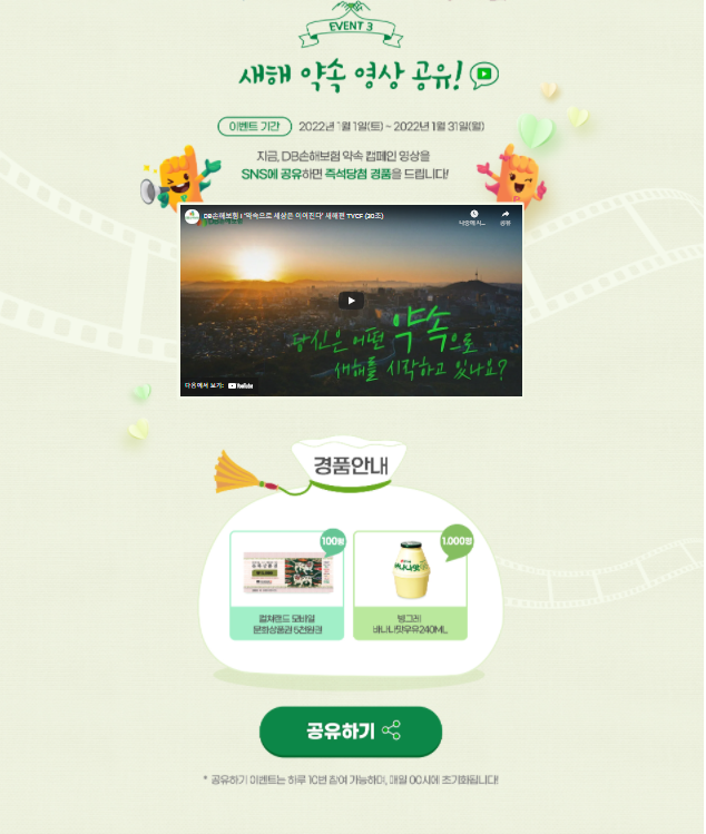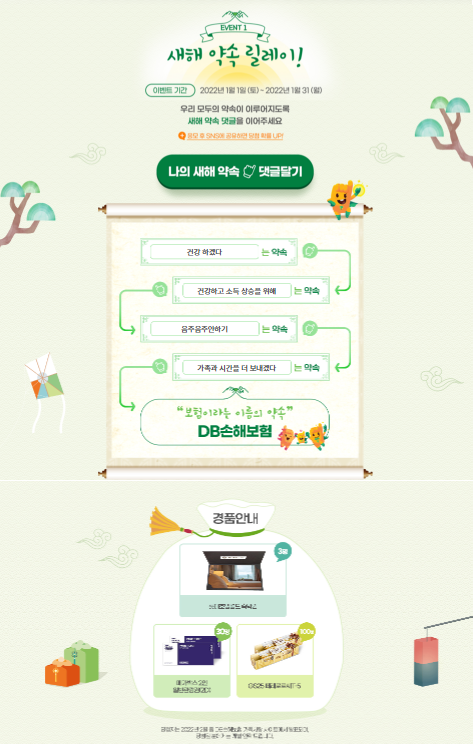 2022년 1월 31일까지 진행되는 ‘새해 약속 이벤트’ 많은 관심과 사랑 부탁드리며, 앞으로도 더 좋은 서비스와 상품으로 보답하는 DB손해보험이 되도록 노력하겠습니다!