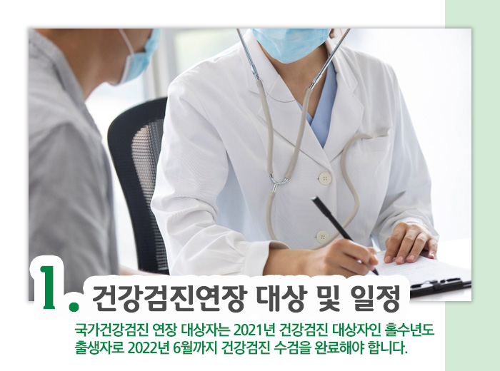 정부는 건강검진을 받지 못한 분들을 배려해 검진 기간을 연장하기로 했는데요. 오늘은 연장된 국가건강검진 일정과 신청방법에 대해 알려드리겠습니다.
