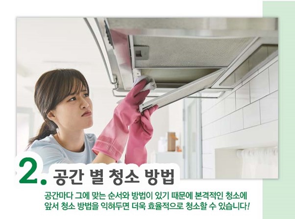 본격적인 청소에 앞서 청소 동선을 미리 정해두면 효율적으로 청소할 수 있습니다.