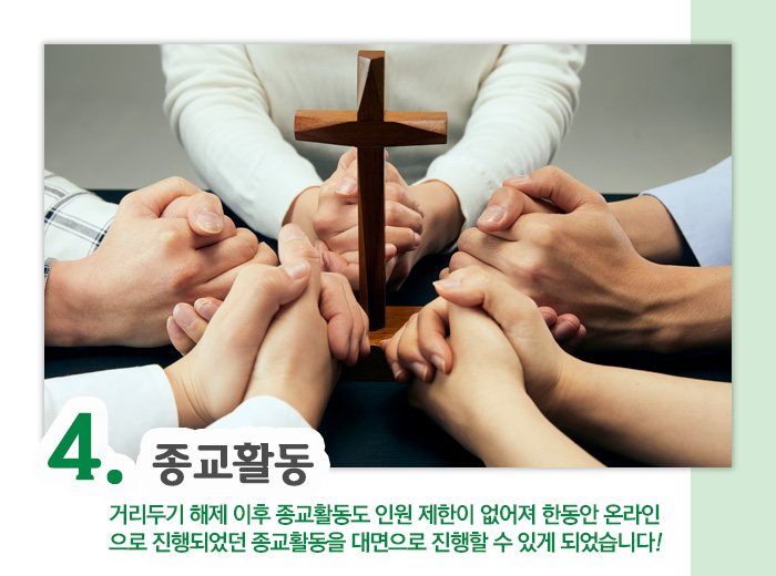 | 4. 대면예배 가능한 종교활동!
