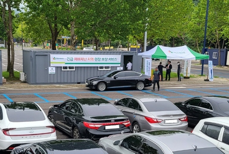 DB손해보험은 침수차량에 대해 우선적으로 견인 조치하고 안전한 곳으로 이동, 관리할 수 있도록 ‘서울대공원 주차장’을 임대하여 임시 보상서비스센터로 운영하기로 결정하고, 피해를 겪은 보험가입 고객이 빠르게 회복할 수 있도록 방문 고객에게 One-Stop으로 보상처리 진행할 예정입니다.