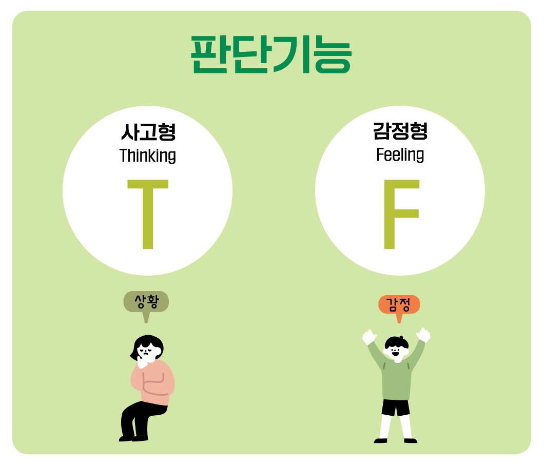 F와 T를 나누는 기준은 판단의 기준입니다. F는 사람과의 관계와 감정을 중점으로 판단한다면, T는 객관적인 진실, 사실, 구체적인 상황이 판단 기준이 됩니다.
