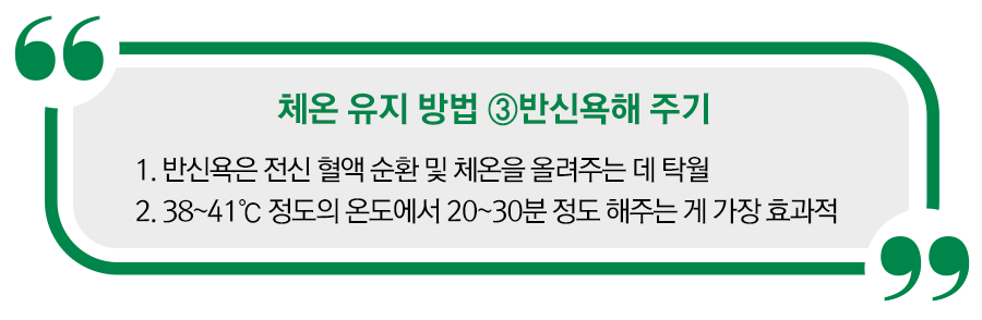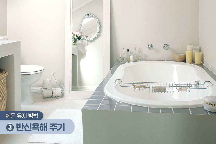 면역력 높이는 방법의 하나로 반신욕을 추천합니다. 반신욕은 따뜻한 물에 배꼽 아래부터 몸을 물에 담그는 건데요. 전신 혈액 순환에 도움을 줄 뿐만 아니라, 체온을 올려주는 효과도 탁월하죠.