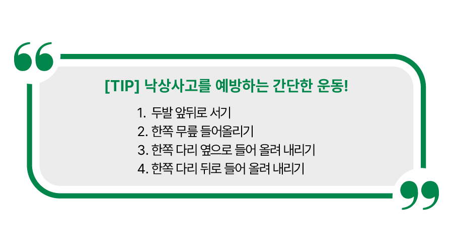 낙상사고는 다양한 곳에서 발생할 수 있어서 미리 예방이 필요하므로 대처 방법이 중요합니다.