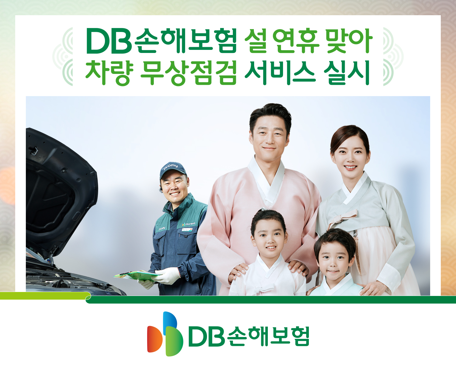 DB손해보험은 오는 16일부터 20일까지 설 명절을 맞아 교통량 증가에 따른 사고예방과 고객만족도 제고를 위해 차량 무상점검 서비스를 실시합니다.