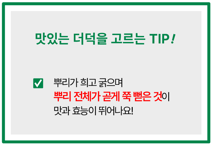 더덕의 쓴 맛은 사포닌의 특징으로 혈액 순환과 정력 증강 효과에 탁월하다고 알려져 있습니다!