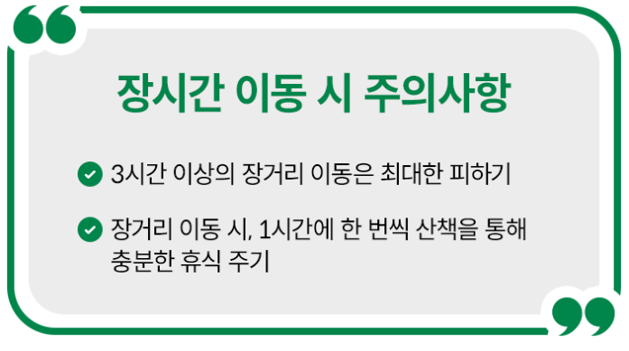그러니 장거리는 최대한 피해주세요! 부득이하게 3시간 이상의 거리를 운행해야 하는 경우, 1시간에 한 번씩 차량에서 내려 충분한 산책과 배설을 할 수 있도록 쉬는 시간을 마련해 주길 바랍니다.