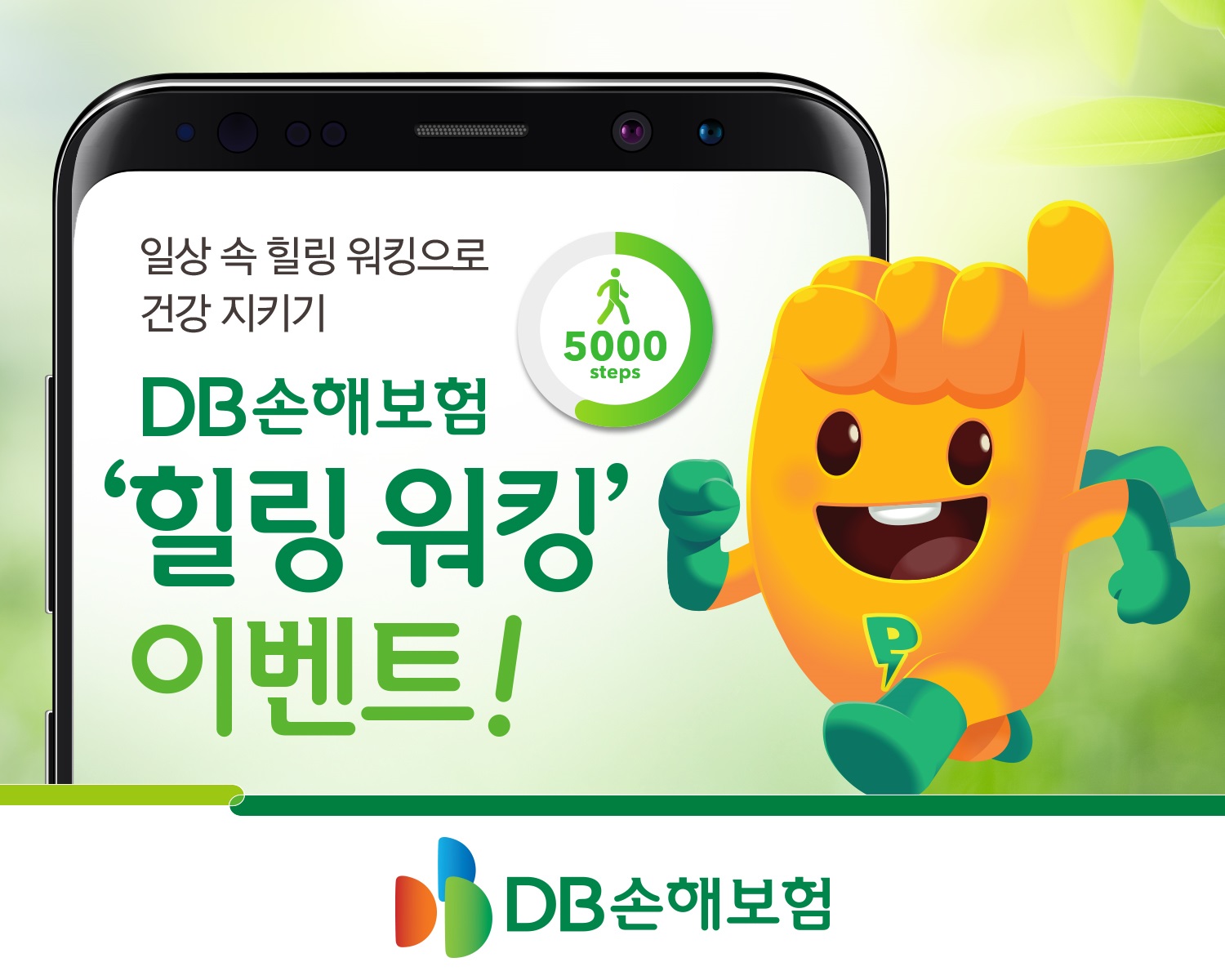 이번 ‘힐링 워킹’ 이벤트는 DB손해보험 앱 회원이라면 누구든지 참여할 수 있는 이벤트로 걸음 수에 따라 다양한 경품에 응모할 수 있습니다.