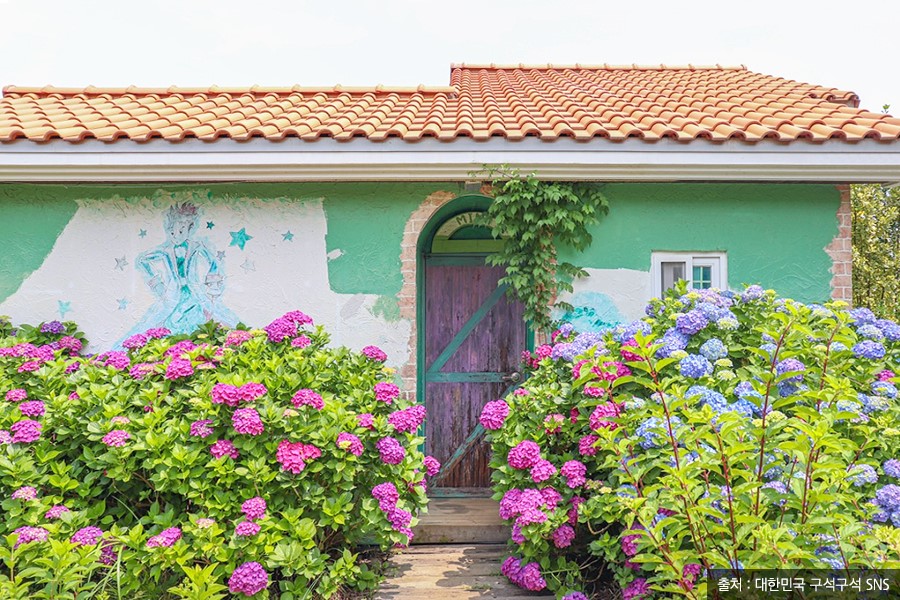 다음으로 소개해 드릴 곳은 거제에 있는 ‘저구마을’입니다! 거제 남부면 저구리에 있는 저구 마을은 수국 특화 마을로 지정될 만큼 마을 곳곳이 수국으로 둘러싸여져 있는데요. 도로뿐만 아니라 주택 사이사이에 수국이 피어있어, 저구마을 어디서나 수려한 수국을 감상할 수 있습니다.