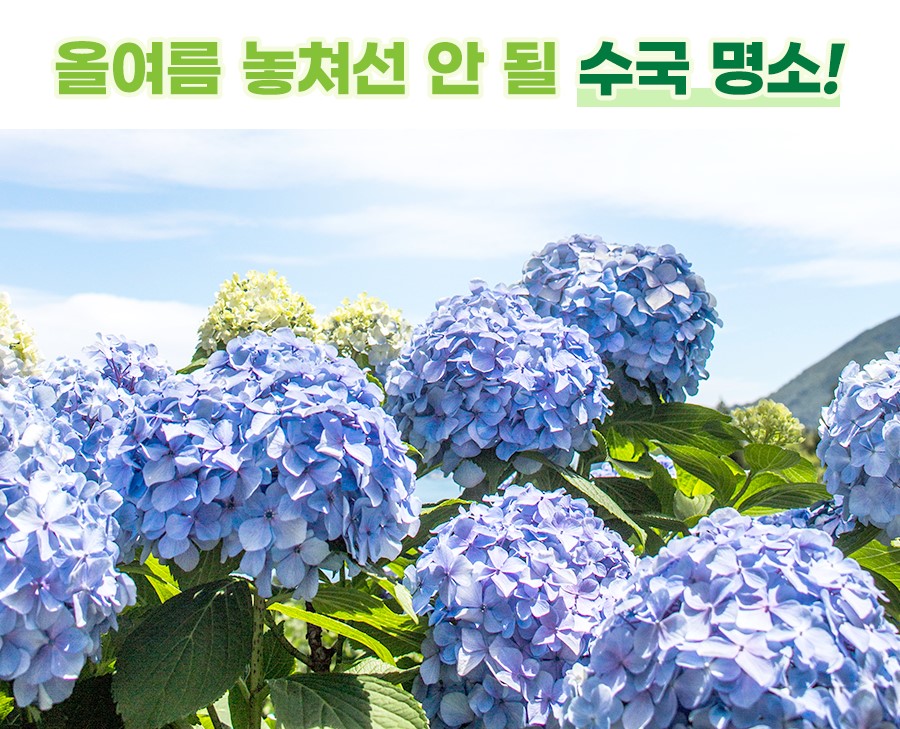 형형색색의 아름다운 수국을 두 눈에 가득 담을 수 있는 지금! 수국은 여름에만 한정으로 만날 수 있으니, 뜨거운 여름이 지나기 전에 수국 보러 떠나시길 바라고요. 사랑하는 가족, 연인과 수국 명소에서 인생샷 남기는 것도 함께 약속해요:)