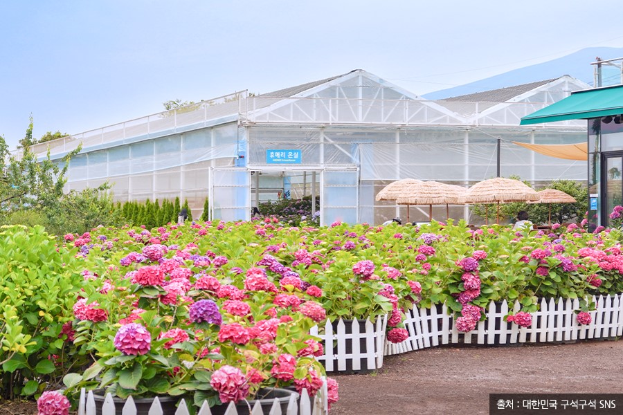 휴애리 자연생활공원은 야외뿐만 아니라, 온실, 수국정원, 수국오름 등 다양한 장소에서 수국을 구경할 수 있습니다. 온실에 배치된 수국은 따뜻한 온도 덕분에 3월부터 피기 시작한다고 해요! 덕분에 이곳에선 이른 봄인 3월부터 늦은 여름 8월까지 만발한 수국을 감상할 수 있답니다. 올여름 제주도로 휴가를 떠날 예정이라면, 꼭 한번 들러 보시길 바랄게요.