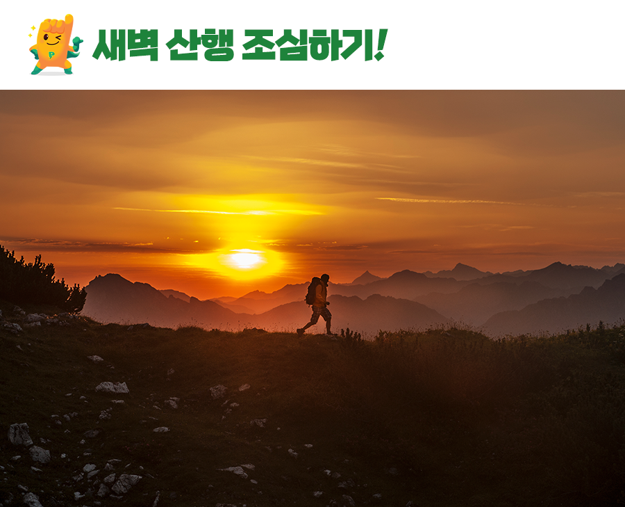 아침저녁 더위가 살짝 물러나면서 새삼 가을이 온 것 같은 기분이 들죠가을은 덥지도 춥지도 않은 날씨 덕분에 야외활동하는 사람이 많아지는 시기입니다그래서 9, 10월이 되면 가을 산행을 즐기고자 산에 오르는 사람이 많은데요하지만 등산 시 간과해선 안 될 주의사항이 있습니다등산 고수부터 초보까지모두가 알아야 할 주의점은 무엇일까요프로미와 함께 알아보도록 합시다.