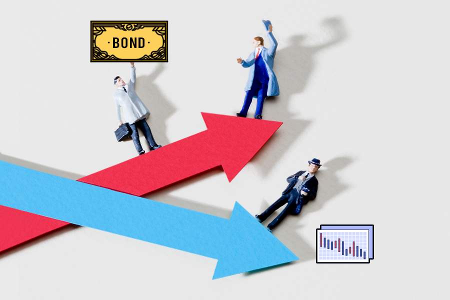 두 번째는 투자 수익을 기대하기 때문입니다. 채권 가격은 금리에 따라 가격이 변동합니다. 이해를 위해 조금 극단적인 예를 들어봅시다. 2023년 9월 1일 증권사에서 채권을 샀는데, 채권 금리가 5%였다면 1년 뒤에 1억과 이자 500만 원을 받게 됩니다. 그런데 10월 1일 한 달이 지난 후 갑자기 금리가 올라 10%가 되었다면, 10월 1일에 채권을 사는 사람들은 1년 뒤에 1억 원과 함께 이자 1,000만 원을 받게 됩니다. 이런 일이 발생하면 채권 시장에는 어떤 현상이 나타날까요? 9월에 채권을 산 사람들은 이 채권을 팔고 싶겠죠. 이자가 너무 낮으니까요. 하지만 아무도 1억을 주고 그 채권을 사지는 않겠죠. 10% 이상 주는 채권이 있으니까요. 결국 팔고 싶거나 팔아야 하는 사람들이 늘어나면 낮은 가격에 팔려고 할 것이고, 채권 가격은 내려가게 됩니다. 반대로 10%였던 금리가 5%로 하락하면 어떻게 될까요? 사람들은 채권을 사려고 하겠죠. 그러면 채권 가격은 오르게 됩니다. 채권 가격은 금리에 따라 변동하기 때문에 금리가 변동에 따라 투자하면 높은 수익을 얻을 수 있습니다.