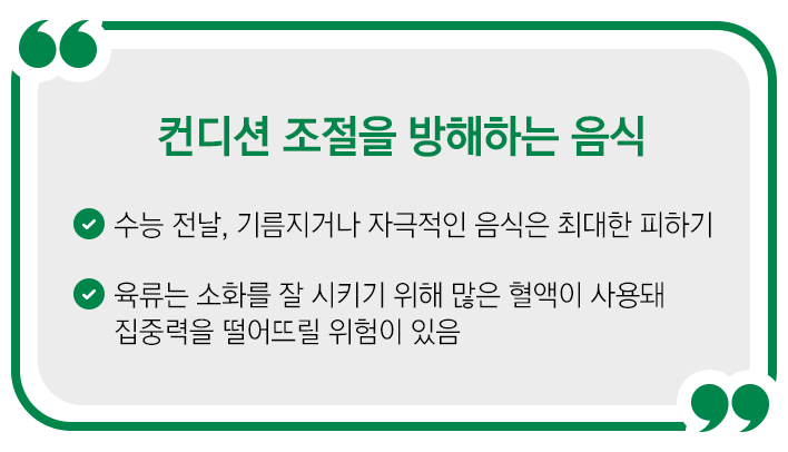 수능 전날, 이런 음식은 피해 주세요!