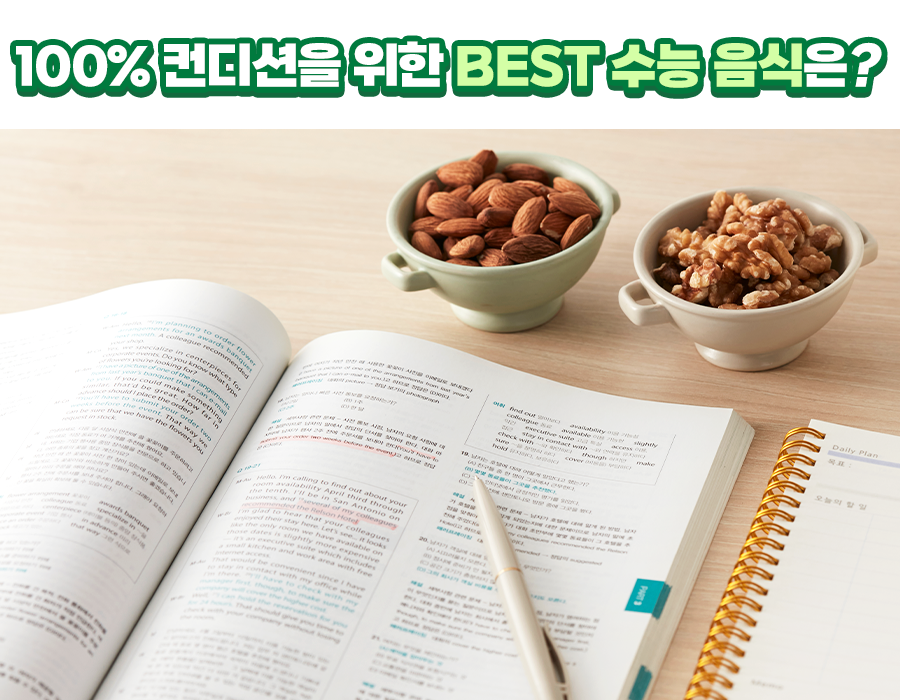 아침저녁 기온이 내려가면서 초겨울의 날씨로 접어들고 있습니다. 이렇게 날이 점차 추워지기 시작하면 곧 수능이 다가오고 있음을 짐작할 수 있죠. 코앞으로 다가온 수능, 수험생은 물론이고 학부모들까지 긴장되는 시기인데요. 지금은 못다 한 공부를 더 하는 것보단 체력 보충과 컨디션 유지에 더 집중해야 합니다. 또, 먹는 것도 더욱 신경 써야 하는데요. 그럼 좋은 컨디션을 유지하는 방법과 수험생에게 좋은 음식은 무엇인지, 알아보도록 합시다.