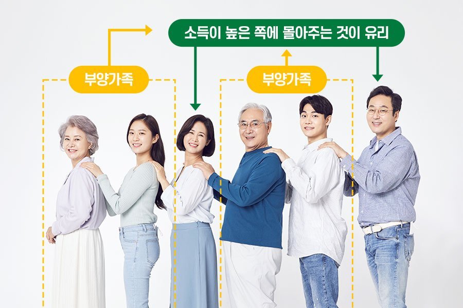 첫 번째, 부양가족입니다. 부양가족은 소득과 나이 요건을 갖춘 본인의 부모, 배우자, 배우자의 부모, 자녀, 형제자매가 해당되고 1인당 150만 원씩 소득공제가 됩니다. 단, 부양가족이 장애인이거나, 연령 등 특정 요건에 맞으면 추가 공제가 이루어집니다. 맞벌이 부부의 경우 동일인이 중복으로 공제받을 수 없으므로 한 사람에게 몰아주는 것이 유리한 경우가 있습니다. 바로 연봉이 높은 가족에게 몰아주는 건데요. 소득공제는 소득이 더 높은 사람이 받는 것이 유리하기 때문에, 연봉이 높은 가족에게 몰아주는 것도 절세 방법 중 하나겠죠.