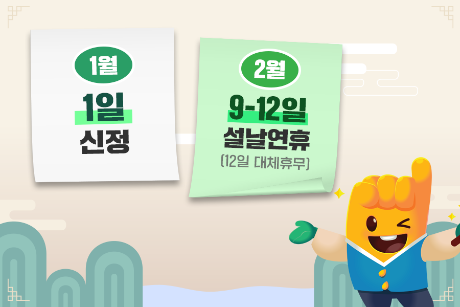 이번 설날은 2월 9일(금)부터 12일(월)까지로, 총 4일을 쉴 수 있습니다. 원랜 설날이 10일(토)로, 금~일요일까지만 쉴 수 있었습니다. 하지만 연휴 기간에 주말 이틀이 포함돼 있어, 12일(월)을 대체 휴일로 지정했죠. 덕분에 월요병 극복할 수 있게 됐네요:D
