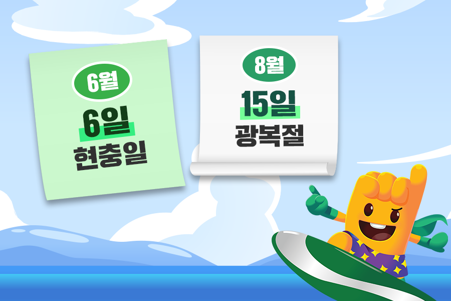7월엔 아쉽게도 휴일이 없어서 6월과 8월에 있는 공휴일을 잘 활용하여 즐거운 여름휴가 보내시길 바랄게요:)