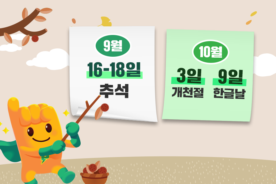 10월도 즐거움은 계속됩니다. 3일(목)이 개천절, 9일(수)이 한글날로 공휴일이 이틀이나 있어, 지친 일상에 활력을 불어넣어 주기 탁월하지요.