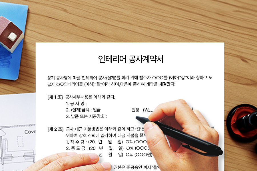 인테리어 공사는 공정이 많고 대부분 인력으로 진행되기 때문에 공사 과정에서 수많은 변수가 발생하게 됩니다. 따라서 인테리어 계약서는 양자 간의 불이익이 발생하지 않도록 꼼꼼하고 정확하게 작성하는 것이 필수입니다. 소비자와 업체의 협의로 이루어지는 약속인 만큼 어떻게 계약하느냐에 따라 공사의 질이 달라지기도 합니다.
