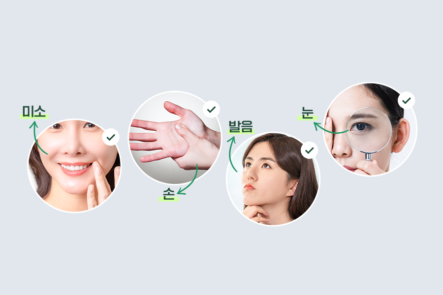 ‘미소, 손, 발, 시선’을 기억하세요. 먼저 ’미소’ 란, ‘환하게 웃지 못하는 경우를 말합니다. “이~" 소리를 내며 거울을 봤을 때 양쪽 표정이나 주름의 비대칭 여부를 확인해 보세요. 한 쪽 얼굴이 잘 안 움직인다거나, 예전보다 비대칭이 심해졌다면 뇌졸중을 의심해 봐야 합니다. 그리고 한 쪽 팔, 다리에 힘이 없는 경우인데요. 양손을 앞으로 뻗었을 때 한쪽 팔이 처지는지, 주먹을 쥐었을 때 한쪽 손에 힘이 잘 안 들어가는지, 걸을 때 발이 끌리거나 한쪽으로 치우치는지 확인해 보세요. 까치발로 걸어보는 것도 약한 뇌졸중을 확인할 수 있는 좋은 방법입니다.
