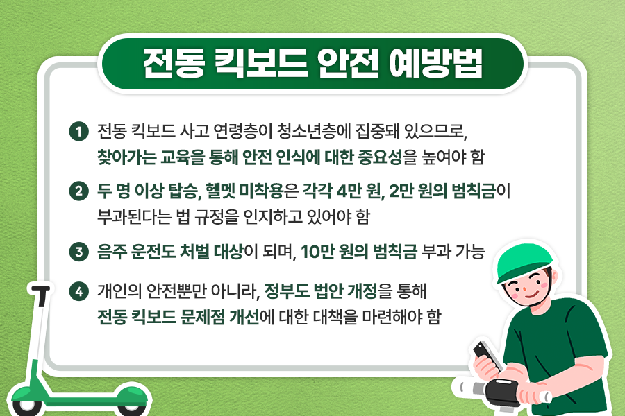 겨울과 달리 봄은 전동 킥보드 사용이 증가하는 계절인데요. 사고 연령층이 대부분 청소년에 많이 분포돼 있어, 전동 킥보드 무면허 운전자가 많죠. 그만큼 안전 교육은 필수입니다. 사고에 취약한 청소년 운전자를 위해 직접 찾아가는 집중 교육이 필요하지요.