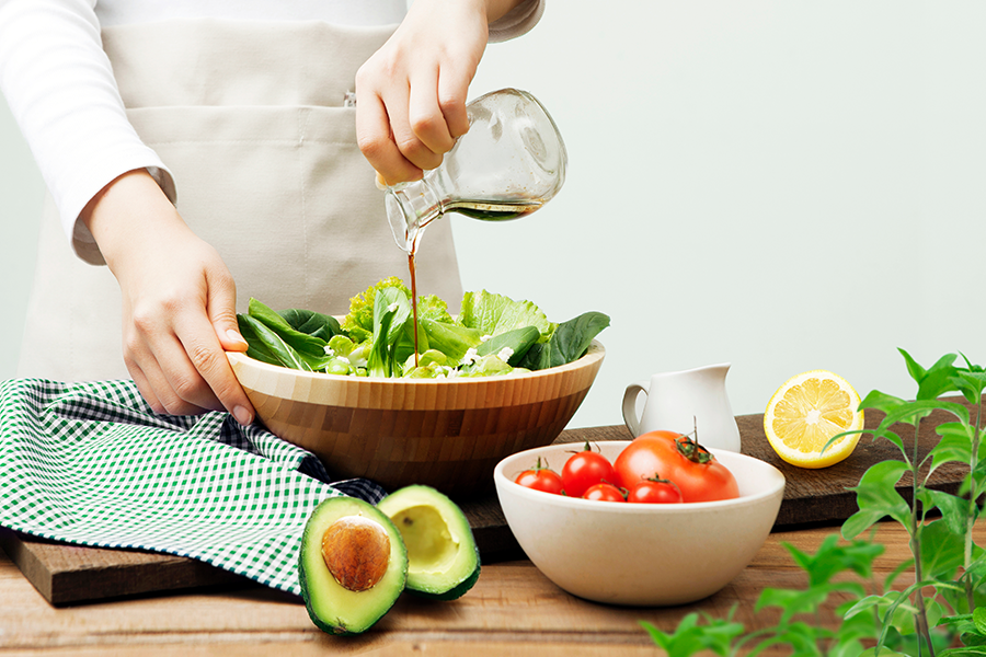 집에서도 발효 양념으로 쉽게 비건 음식을 만들 수 있습니다. 채소 겉절이로 비빔밥을 만들어 먹는 건데요. 사찰음식이 거창하다고 여겨지거나 비건에 거부감이 있는 사람도 우리 한식을 먹는 것은 부담스럽지 않을 것입니다. 기본 발효 양념 몇 가지와 참기름 하나만 있어도 어렵지 않게 비건의 첫 발걸음을 뗄 수 있습니다.