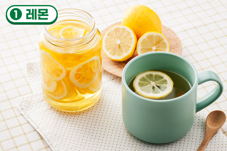 레몬엔 비타민C가 가득 들어있죠:D 100g당 53mg이 들어있어, 항산화 작용이 정말 탁월한데요. 이 항산화 작용은 기관지 염증 악화를 예방해 주는 효과가 있답니다. 덕분에 기침, 가래 등 목감기 증상을 완화해 주죠. 이 밖에도 면역력을 증진시켜 감기에 잘 걸리지 않게 해주고요. 체내 독소 제거에도 도움을 줘 피부 건강에도 탁월합니다.