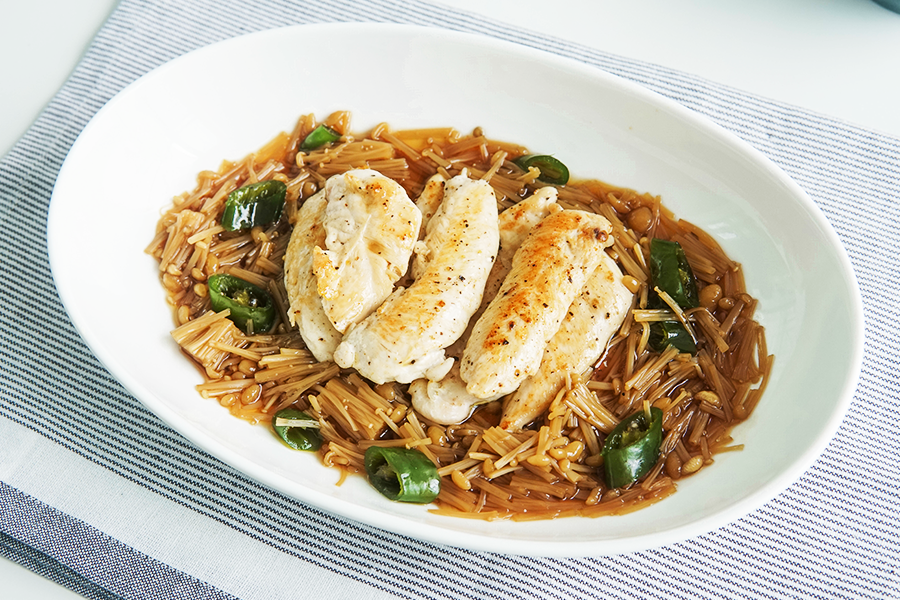 1) 팽이버섯 닭 안심 덮밥